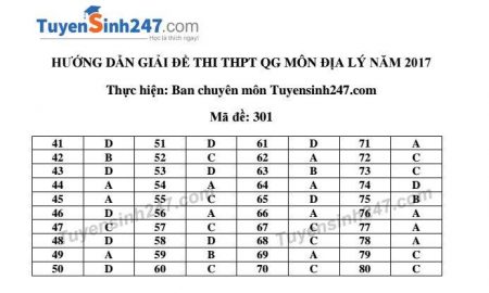 Đáp môn tổ hợp khối Khoa học xã hội kỳ thi THPT Quốc gia năm 2017