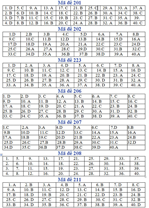 Đáp án chính thức tổ hợp môn Khoa học tự nhiên kỳ thi THPT quốc gia