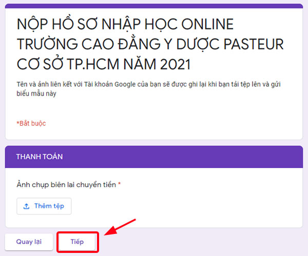 - Sau khi tải ảnh chụp thông tin chuyển tiền, thí sinh bấm “Tiếp” để chuyển sang bước 4.