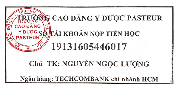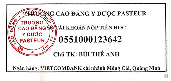 - Thông tin chuyển khoản của Trường Cao đẳng Y Dược Pasteur: