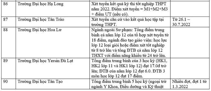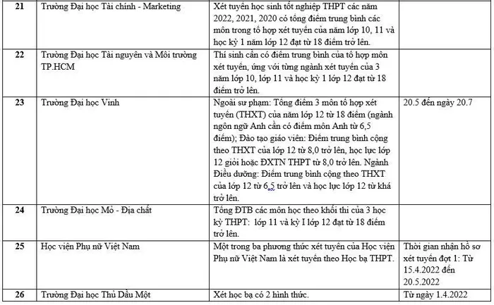 Thông tin đến các thí sinh tổng hợp danh sách hơn 100 trường đã công bố phương án tuyển sinh bằng hình thức xét học bạ trung học phổ thông vào các ngành đào tạo năm 2022.